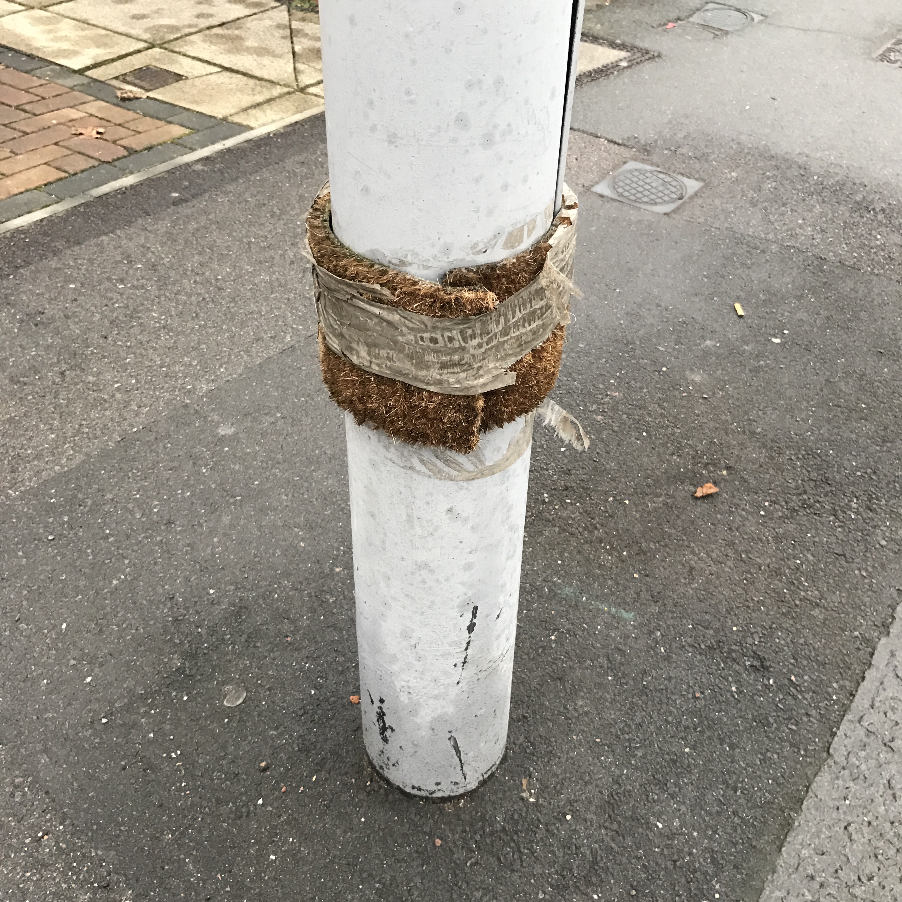 I spotted this old bit of door mat taped to a lamppost while walking to Kingston University.