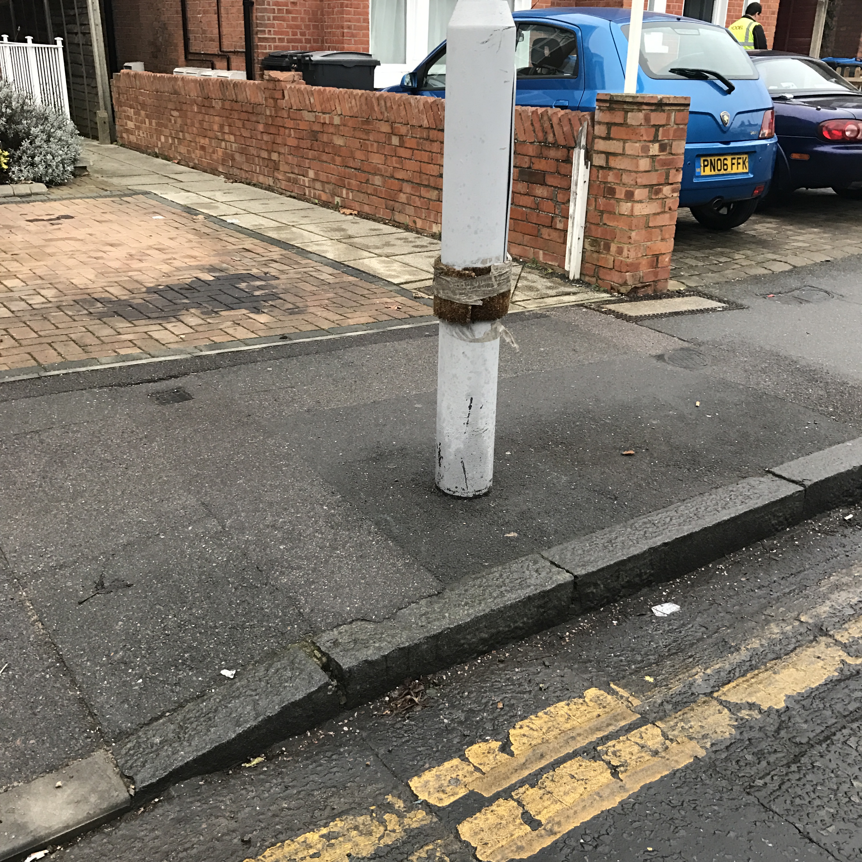 Taking a step back to see it in context and I realised it was a car bump protector. Whoever parks in that drive must have learned the hard way that the lamppost is dangerously close.