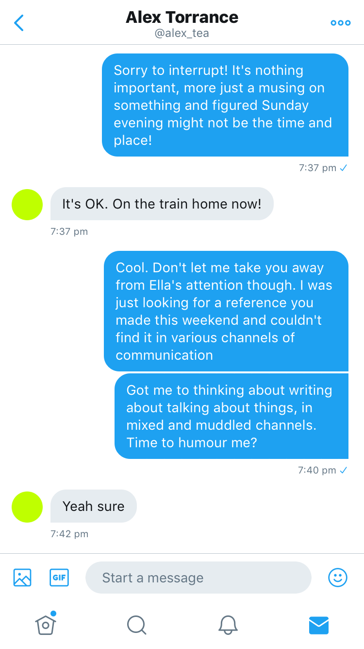 I’ve wondered for a while about how muddled I get across different communication channels, and I’m not exactly sure when it started.
