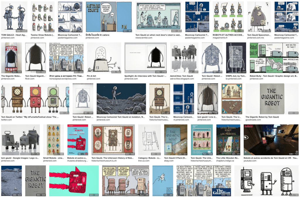 I did this image search a looong time ago while daydreaming about a little philosophical comic strip project. I’ve long loved Toms work, ever since seeing what I think was his first exhibition at the old St. John Street offices of SEA. In later years I was lucky enough to share a studio with Tom and got to witness his work and processes first-hand. Since then though, an occasional image search of his work is all I have to scratch the itch. Lovely stuff, as always.